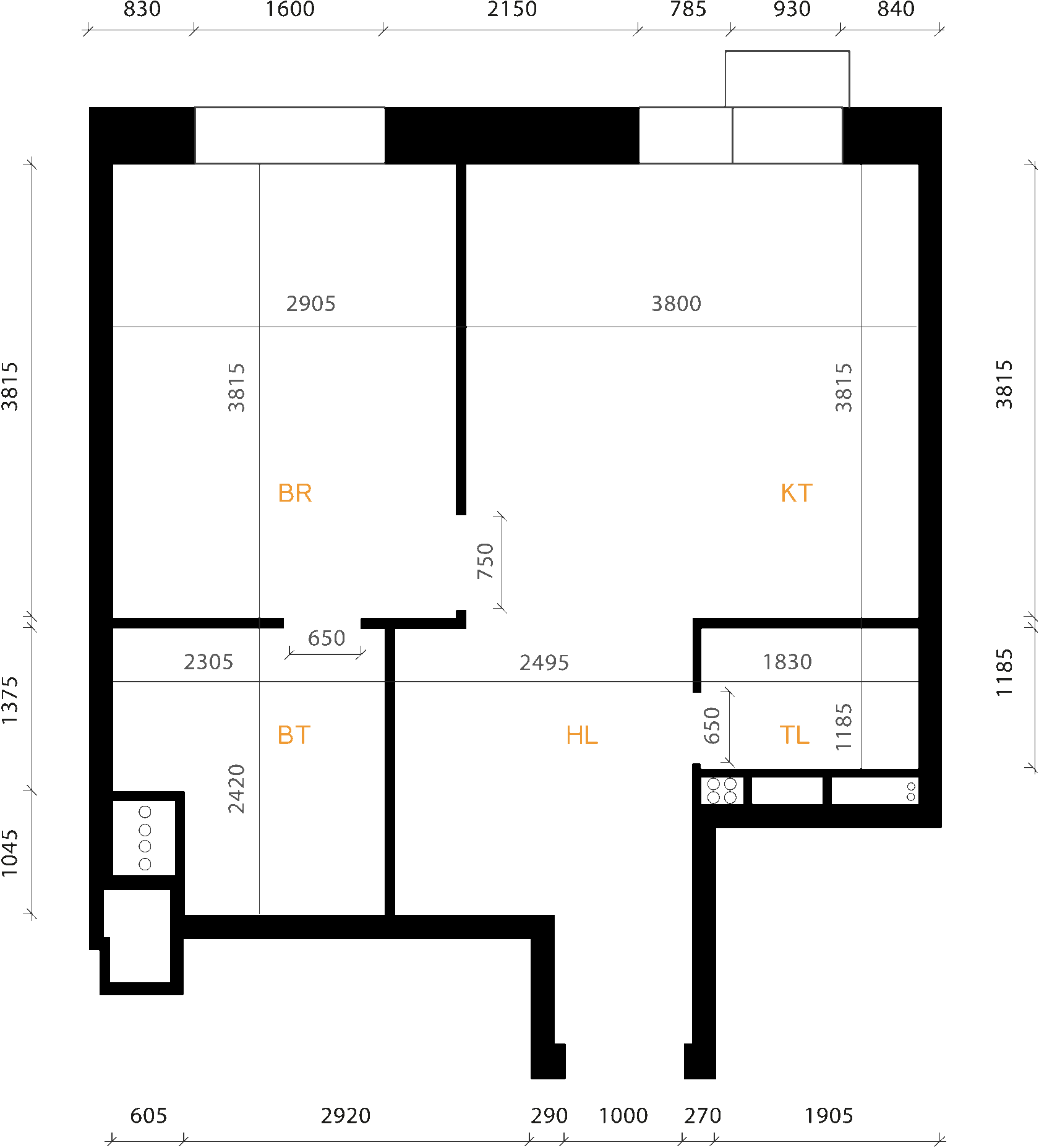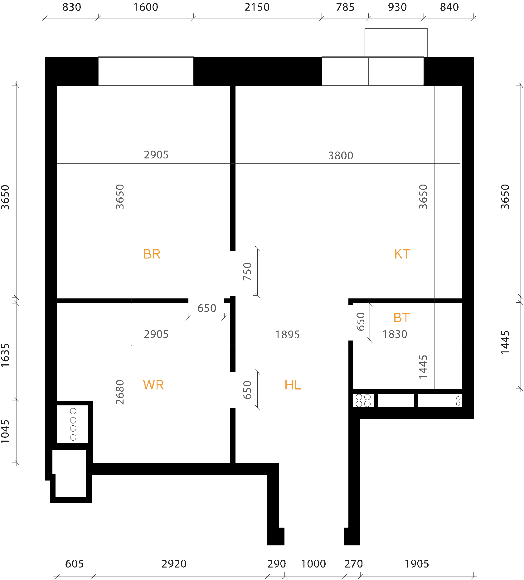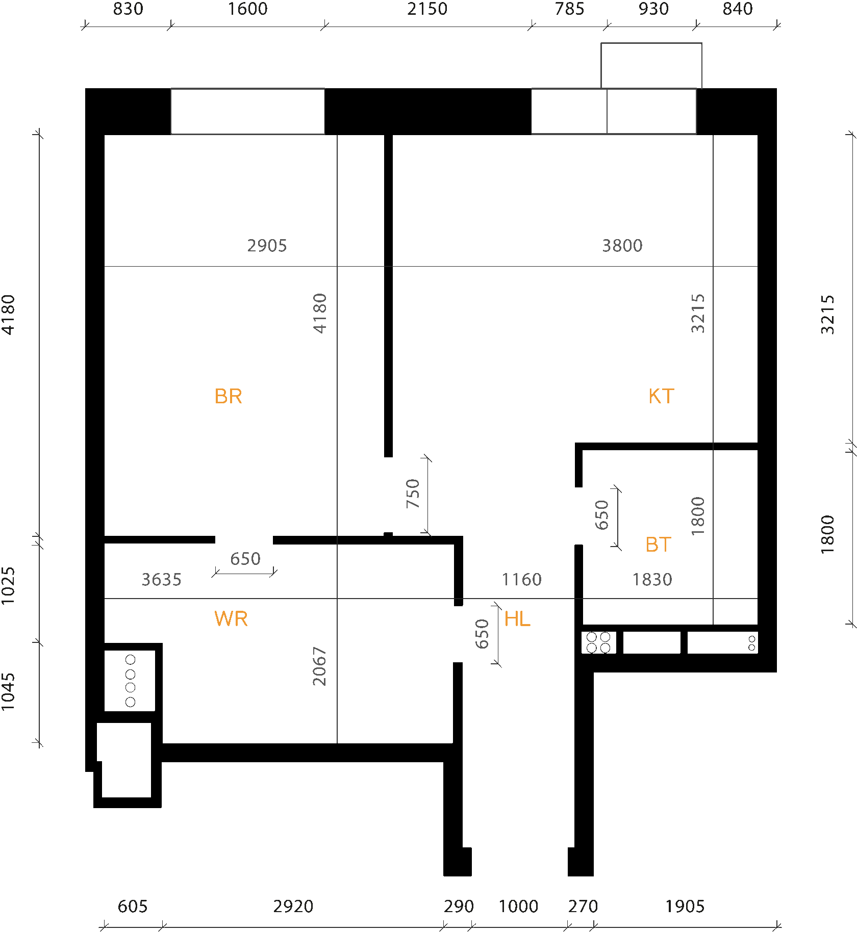 The space of 40 sq.m. is located on the second floor of a modern residential complex. The absence of internal load-bearing walls and the well-proportioned layout allow for multiple options in functional zoning.